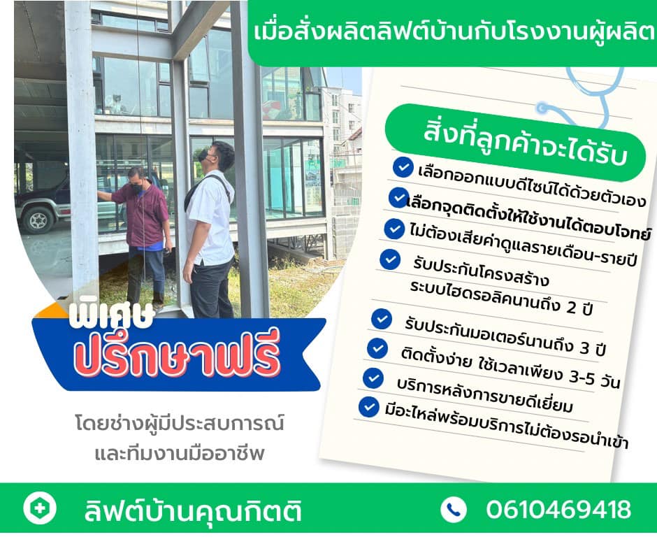 กิตติลิฟต์บ้าน เป็นผู้เชี่ยวชาญด้านงานออกแบบสร้างและติดตั้งลิฟต์บ้านไฮดรอลิค ลิฟต์ตึกแถวไฮดรอลิค